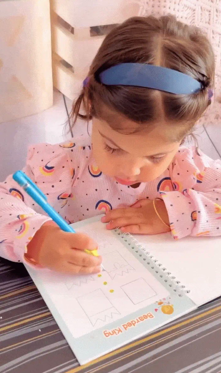 Avec ses pages effaçables et ses tracés guidés, votre enfant écrit, recommence et s’améliore sans s’en rendre compte.